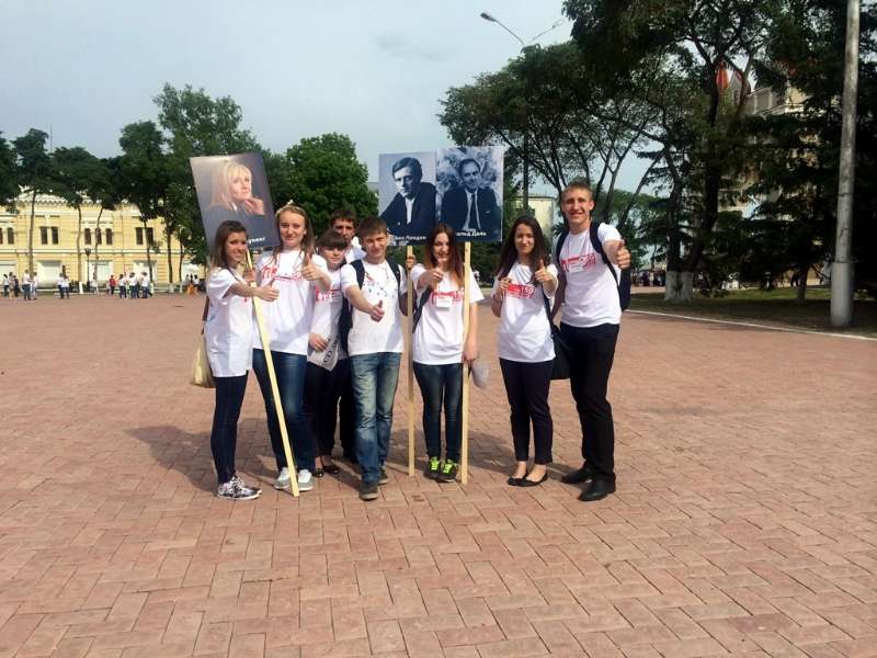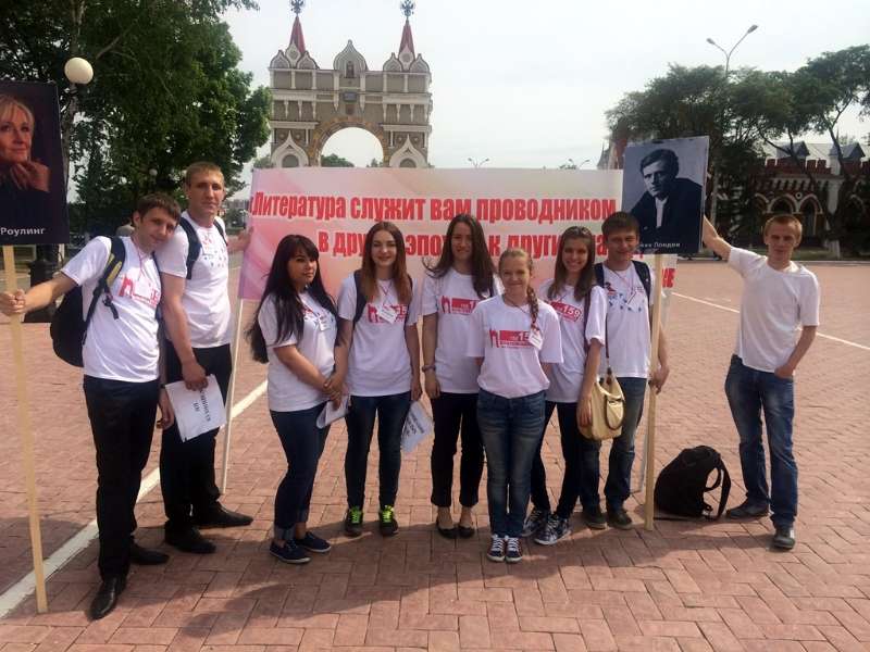 В День города Благовещенска волонтеры БГПУ приняли участие в литературном карнавале. Им выпала честь помогать организаторам шествия. Ребята вели колонну с героями произведений зарубежных авторов, таких как Красная шапочка, Гарри Потер, Алиса в Стране Чудес и др.