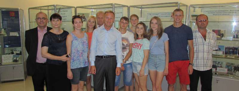 В ходе визита Председателя Правительства Российской Федерации Дмитрия Анатольевича Медведева 21 августа проведена встреча студентов-практикантов с министром образования и науки Российской Федерации Дмитрием Викторовичем Ливановым и вице-президентом ОАО «Объединенная ракетно-космическая корпорация», руководителем Восточного отделения МОО «Российская академия космонавтики им.К.Э Циолковского» Константином Васильевичем Чмаровым.
