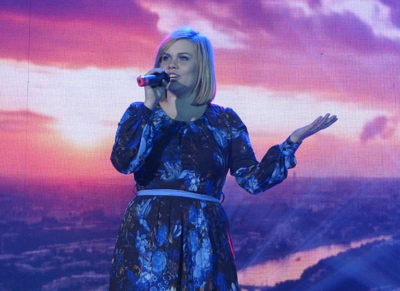 участников концерта на сцену под песню «Птица счастья», которую исполнили