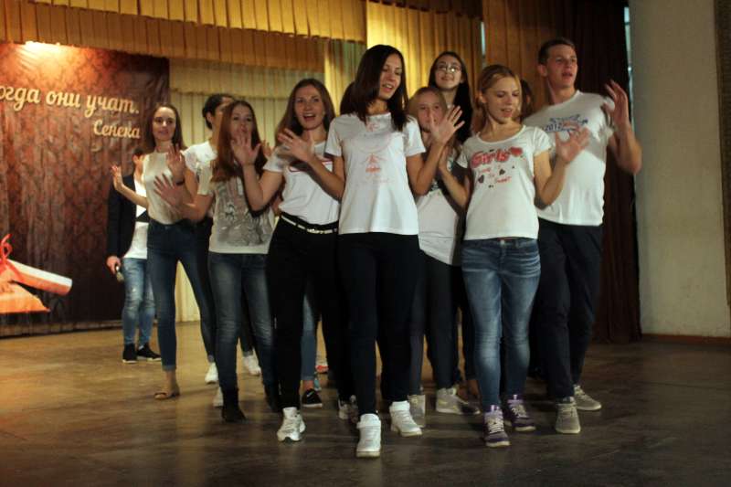 а после студенты продемонстрировали зрителям номер с использованием степов,