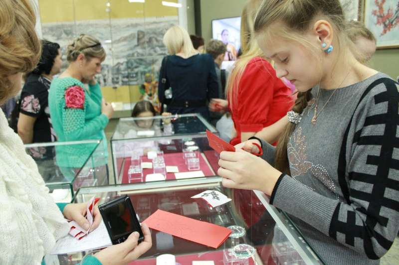 Сотрудники Института Конфуция БГПУ подготовили для гостей музея мастер-классы по каллиграфии, вырезанию из