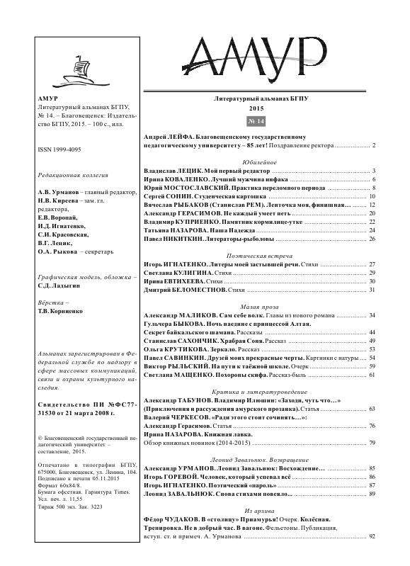 Васильевич Лейфа отметил особую миссию альманаха «Амур»: