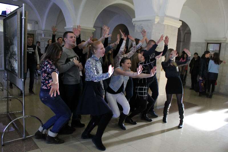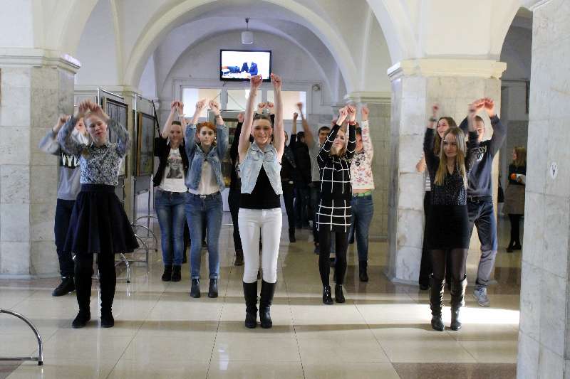 19 ноября студенты 1 курса факультета иностранных языков организовали в холле БГПУ флешмоб, посвященный 85-летнему юбилею университета. Их ритмичный танец привлек внимание достаточно большого количества зрителей и порадовал публику. От имени всех студентов и преподавателей инфака желаем нашему университету процветания, стабильности и творчества!