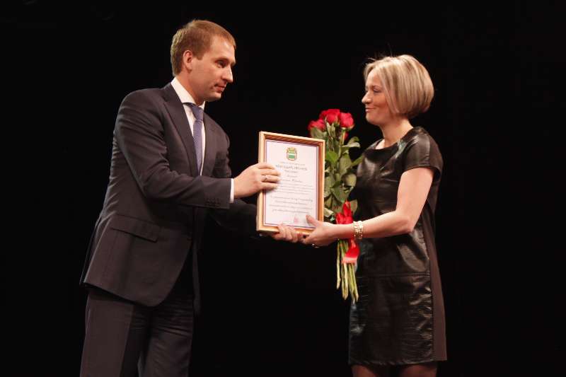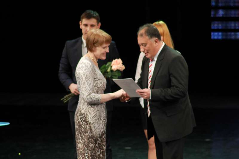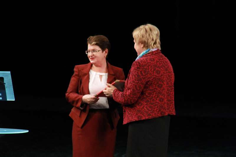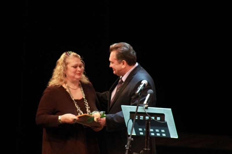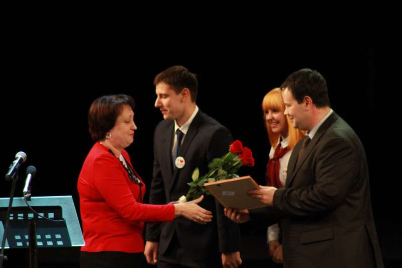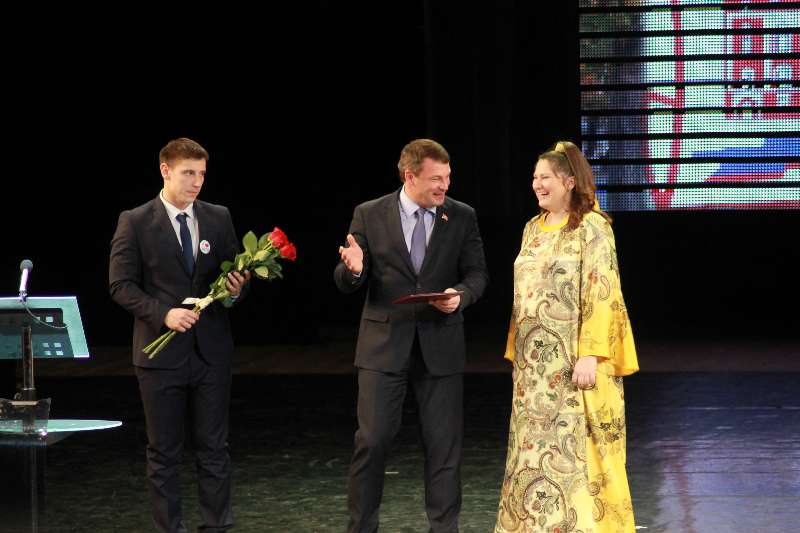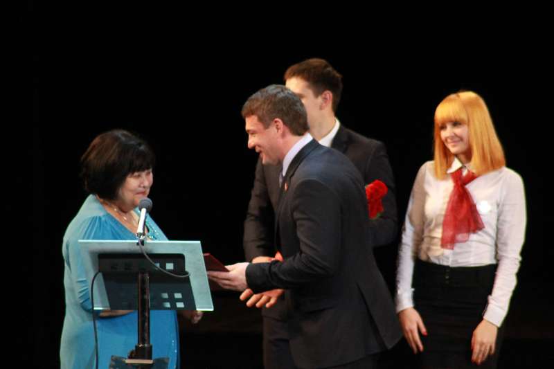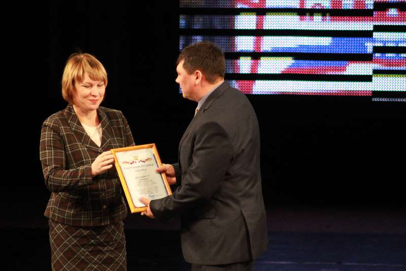 Оксана Евгеньевна Чупрова - поздравили присутствующих в зале и вручили почетные