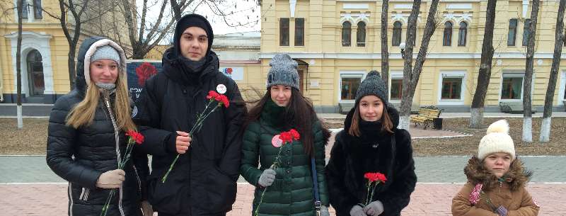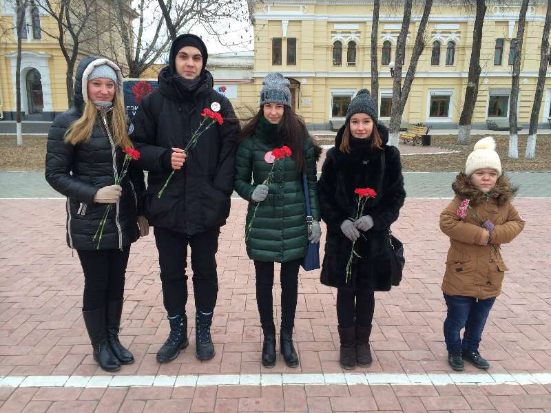 3 декабря студенты БГПУ, члены Волонтерского корпуса 70-летия Победы БГПУ, приняли участие в акции «День неизвестного солдата», организованном ЦРМиОИ «Выбор» совместно с Волонтерским корпусом 70-летия Победы в рамках Дней единых действий. Акция проходила во всех городах России. В Благовещенске участники собрались возле мемориального комплекса на Площади Победы и возложили цветы к памятнику.