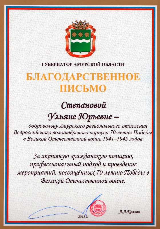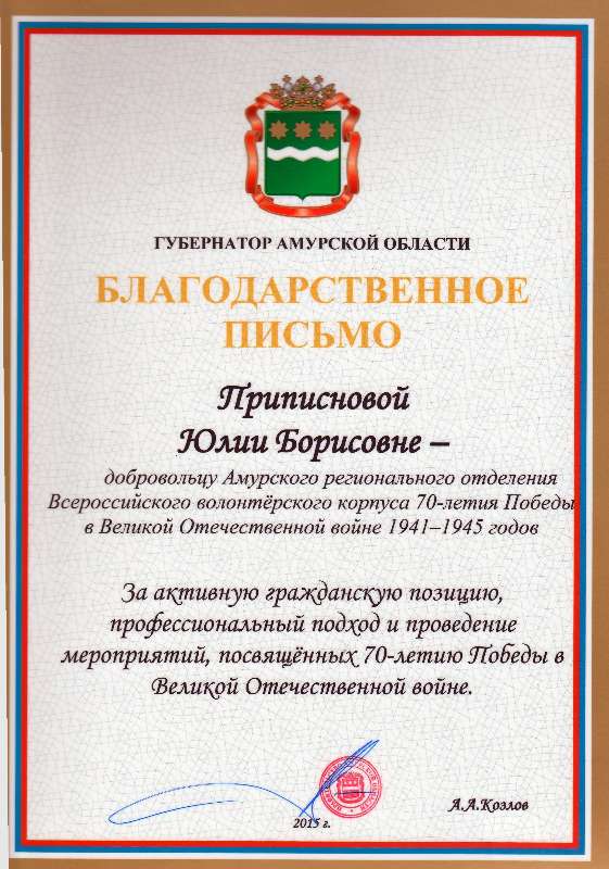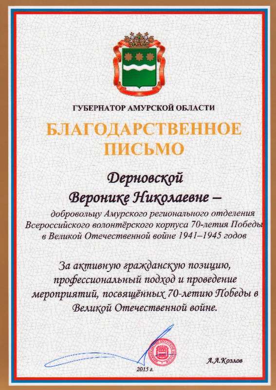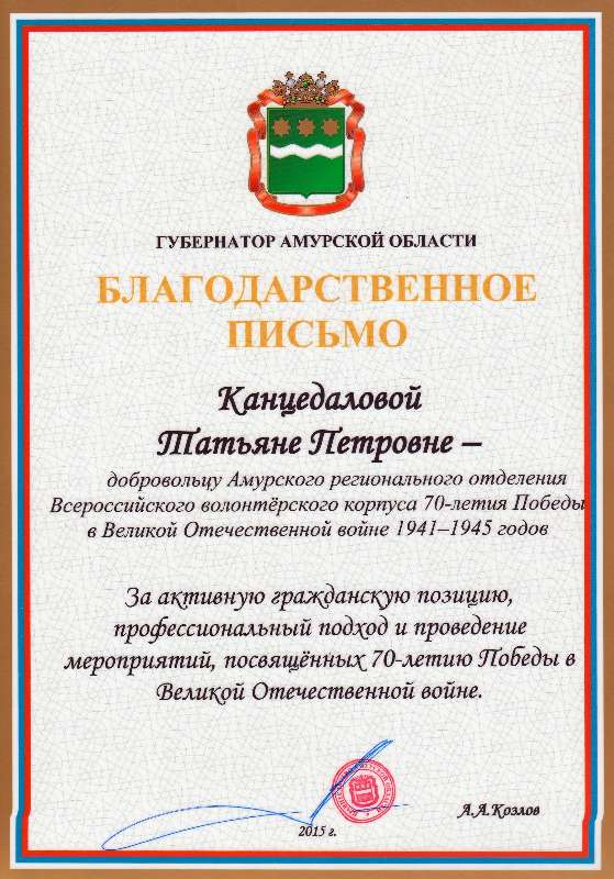 Великой Отечественной войне от губернатора Амурской области А.А. Козлова;