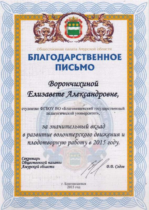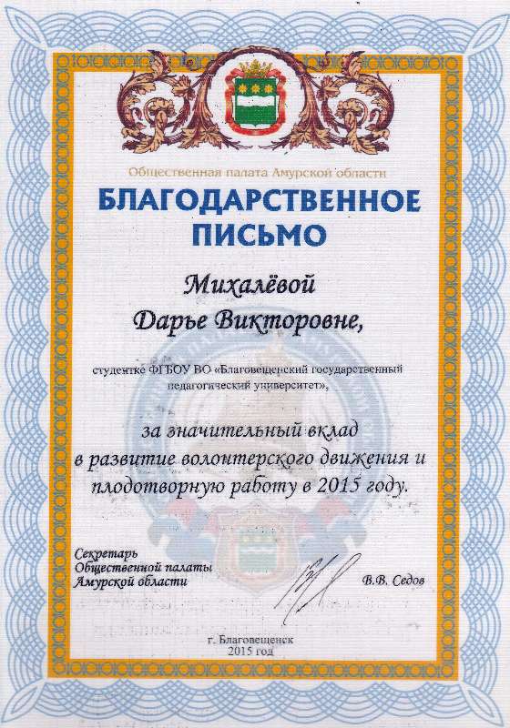 в 2015 г. от секретаря Общественной палаты Амурской области В.В. Седова;