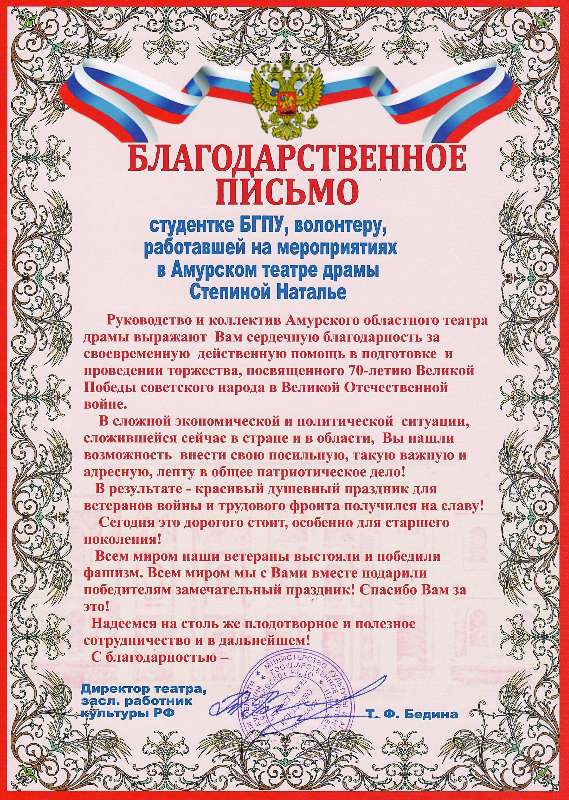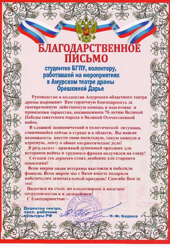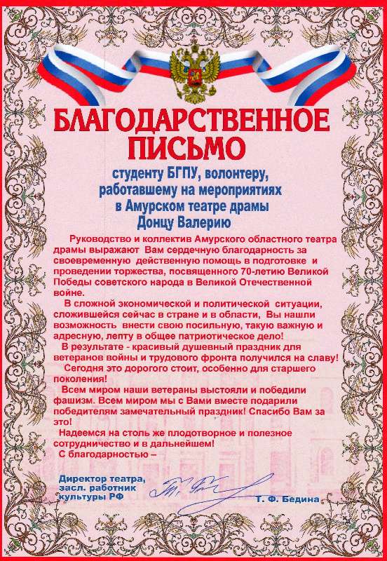 Великой Отечественной войне от директора Амурского театра драмы, заслуженного