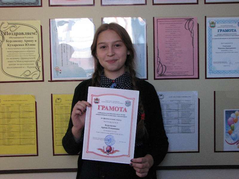 Бурлакова Арина, 9 класс – победитель