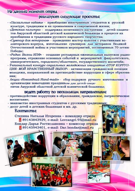 Представители педагогических отрядов побывали на встрече с губернатором Амурской области А.А. Козловым. Свои вопросы Александру Александровичу имели возможность задать бойцы СПО «Взлет», отрядов «Мастера добра» и «Всегда рядом», Поискового отряда БГПУ, Штаба РСО БГПУ.