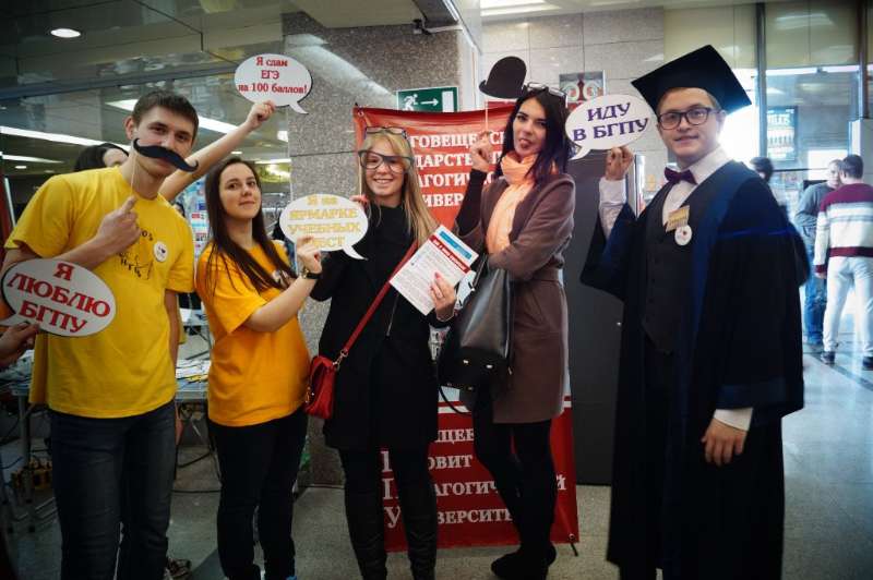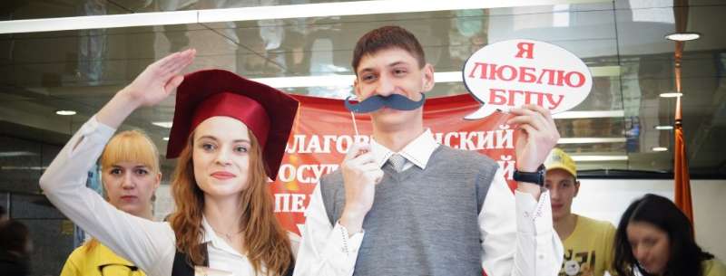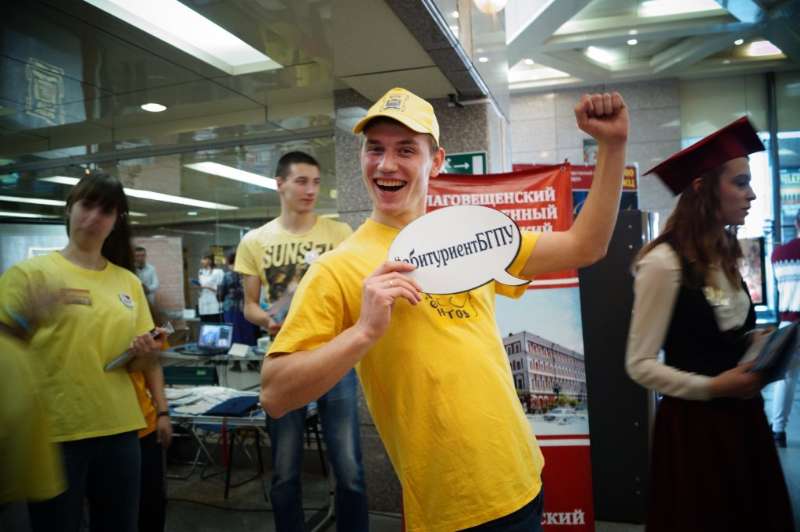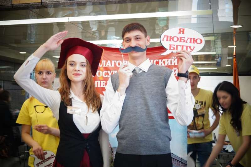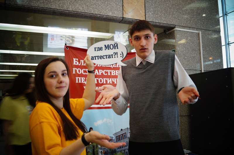 Сегодня в Благовещенске проходила Ярмарка учебных мест. Студенты нашего вуза и сотрудники центра профориентации и содействия трудоустройству, вооружившись буклетами и журналами с необходимой информацией о поступлении, а также с множеством атрибутов для фото-, аудио-, видео- и искренней улыбкой оказались, пожалуй, самыми активными и яркими профессиональными ориентирами. Не упустив ни одного школьника, каждый студент старался наиболее емко и интересно рассказать об учебе в вузе в целом и по каждому факультету.