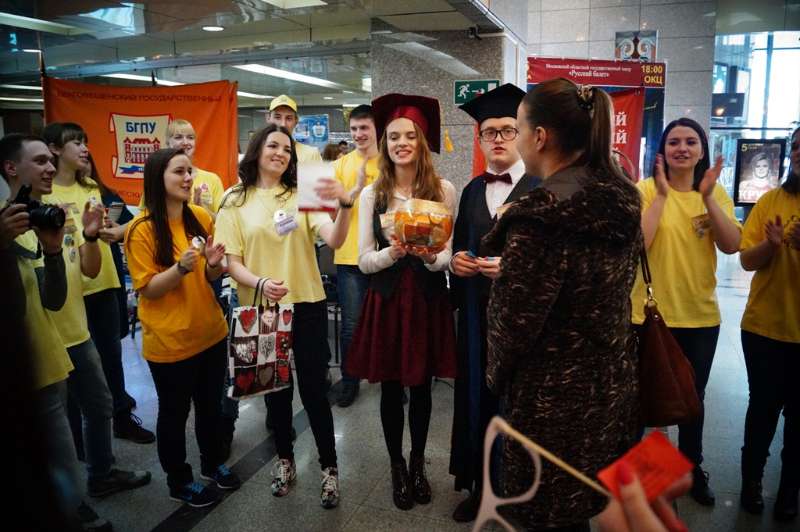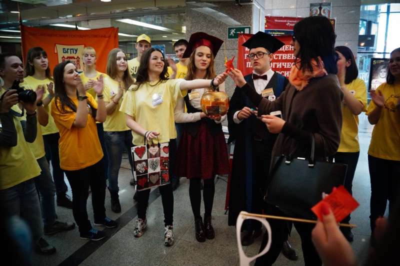 Помимо бесед, студенты БГПУ предложили сделать фото, используя веселую атрибутику - от диалоговых окон с типичными для выпускников фразами до забавных усов, очков и шляп. Чтобы ребята запомнили наш вуз не только по эмоциям, полученным на встрече, но и визуально, студенты подготовили для них беспроигрышную лотерею с символичными призами.