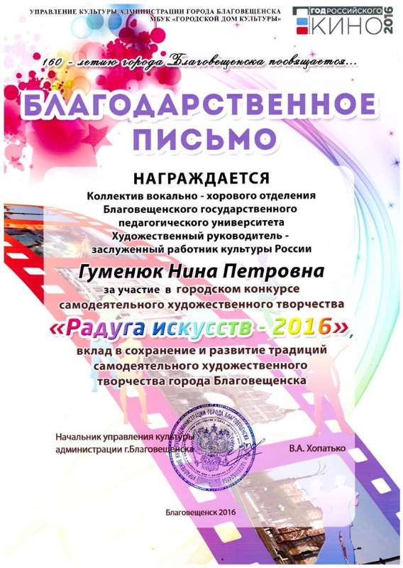 9 апреля в общественно-культурном центре Благовещенска состоялся гала-концерт и церемония награждения победителей городского конкурса самодеятельного художественного творчества "Радуга искусств". Творческие объединения БГПУ получили несколько призовых мест.