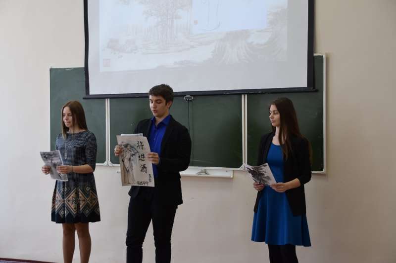 Члены жюри – преподаватели кафедры романо-германских и восточных языков, Института Конфуция БГПУ, а также Хэйхэского университета – на творческой презентации команд увидели китайский вариант шоу «Голос», номера с ушу, сценки на китайском языке, создание рисунка и другие выступления.