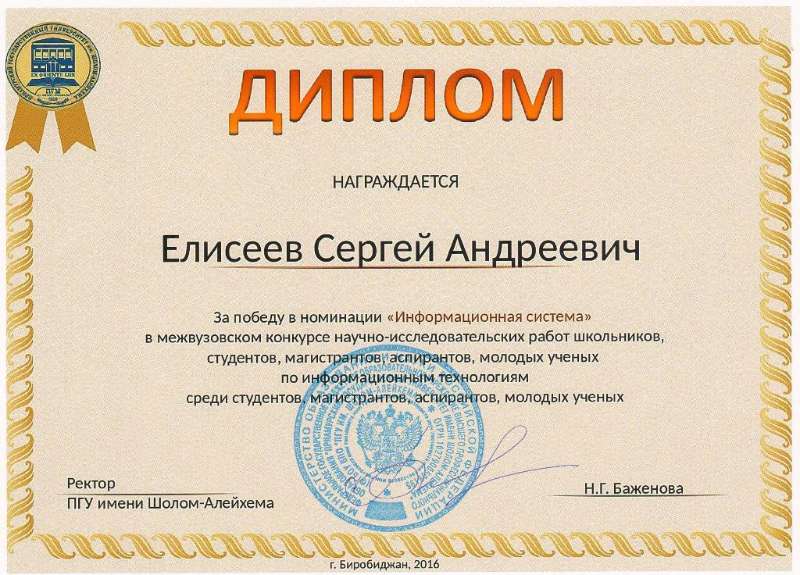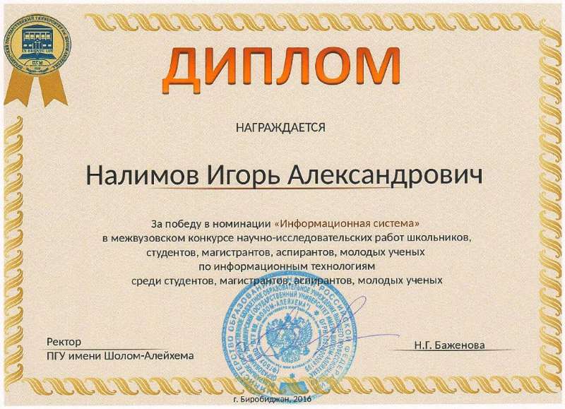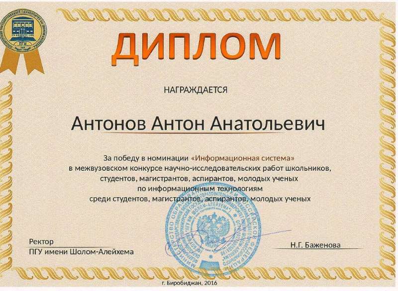 С 15 февраля по 24 марта 2016 года на кафедре информационных систем, математики и методик обучения Приамурского государственного университета им. Шолом-Алейхема проходил межвузовский конкурс научно-исследовательских работ школьников, студентов, магистрантов, аспирантов, молодых ученых по информационным технологиям.
