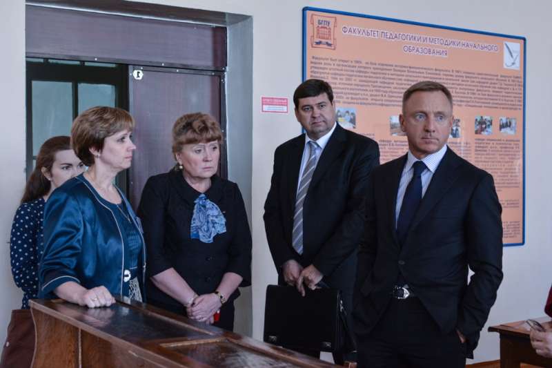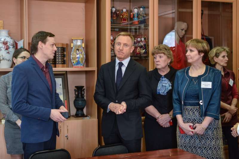 В читальном зале №1 научной библиотеки Н.П. Золотарева рассказала об уникальных изданиях, которые хранятся в фонде редких книг. В литературно-краеведческом музее доктор филологических наук А.В. Урманов продемонстрировал Литературную энциклопедию Приамурья и альманах «Амур». В музеях археологии, геологии и зоологии министру показали редкие экспонаты и отметили, что экспозиции музеев – это результаты научно-исследовательской деятельности преподавателей и студентов вуза. В Институте Конфуция Дмитрий Викторович интересовался изучением студентами и школьниками китайского языка, как в Благовещенске, так и в школах области. А в химических лабораториях он узнал о том, что БГПУ – единственный вуз Амурской области, который готовит химиков-аналитиков. Заглянула правительственная делегация и на занятие по робототехнике, где школьники конструировали своих роботов. Глава Минобрнауки России встретился и даже сфотографировался с лицеистами БГПУ.