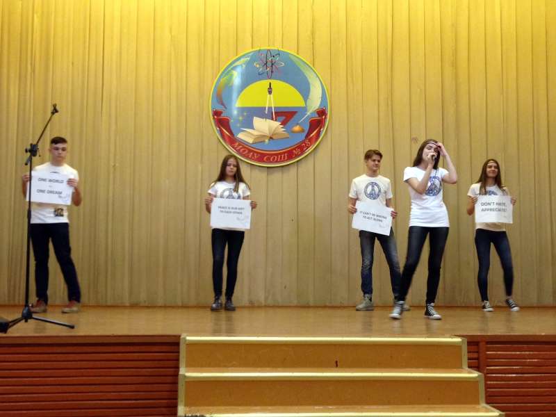 14 апреля на базе МАОУ «Гимназия №25 г. Благовещенска» состоялся первый этап городского конкурса песен и стихов на иностранных языках. В отборочном туре приняли участие более 20 команд. По итогам первого этапа в финал вышли представители 9 класса лицея БГПУ: Юлия Кухаренко, Тамара Невмывака, Станислав Сёмин, Полина Морозова, Роман Сафронов. 27 апреля в МАОУ Школа №28 г. Благовещенска состоялся итоговый концерт, в котором приняли участие ребята, показавшие, по мнению жюри, наилучшие успехи в английском языке. Наши лицеисты исполняли знаменитую песню Джона Леннона Imagine, написанную им в период войны во Вьетнаме и негласно ставшую гимном мира. Чистый вокал, безупречное произношение, выверенные движения на сцене и видеоклип, созданные специально для выступления не оставили равнодушными никого в зале. Единогласным решением жюри первое место было отдано нашим ребятам. Так держать, лицеисты!