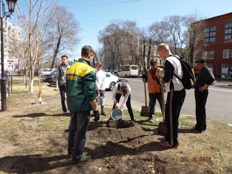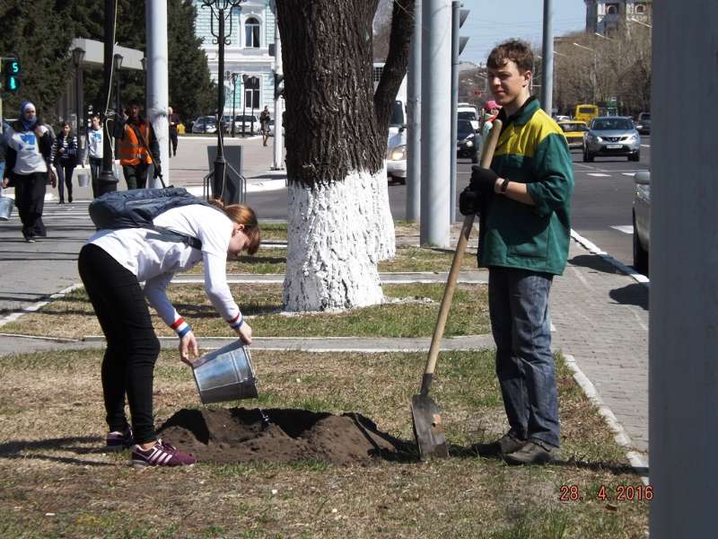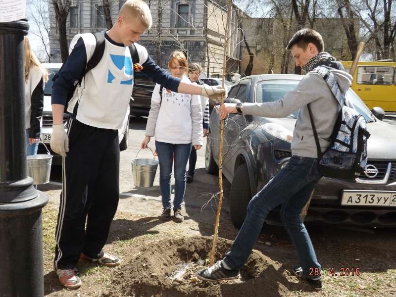 высаживали саженцы березы и серебристого тополя по улице Ленина, в том числе
