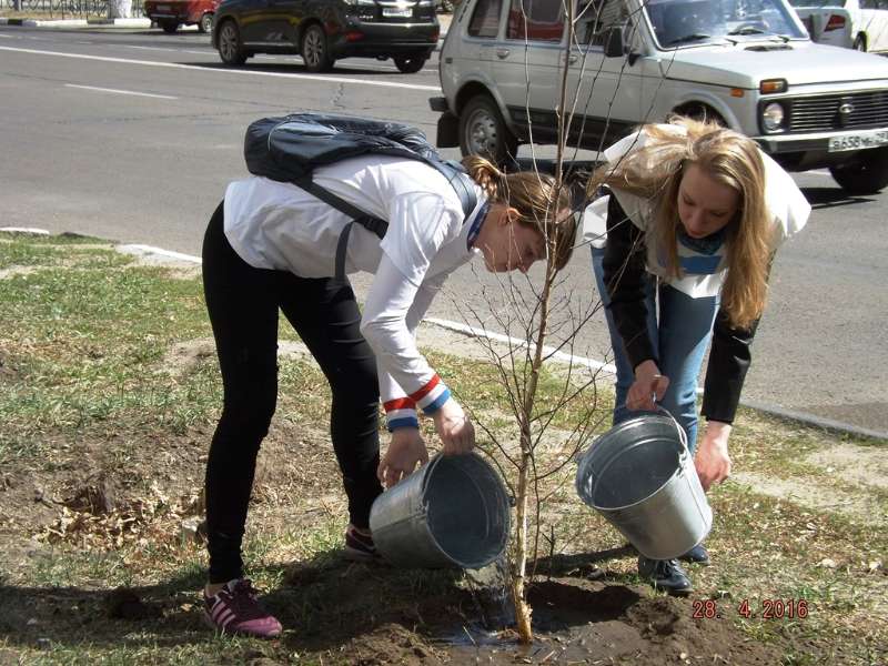 Степина (ИПФ) и Оксана Лузгина (ППФ), члены Волонтерского корпуса БГПУ, 28 апреля приняли участие в акции «Дерево Победы» в рамках мероприятий, приуроченных к 71-ой