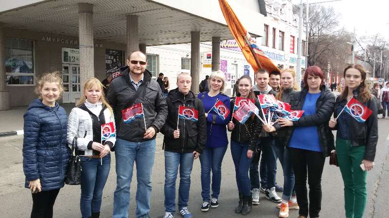 1 мая, в День Весны и Труда, улица Ленина с самого утра была украшена флагами различных организаций, политических партий и объединений. На шествие по главной улице Благовещенска собралось более трех тысяч человек. Объединенный совет обучающихся, профсоюзная организация студентов, студенческие объединения, преподаватели и сотрудники БГПУ вместе с представителями других учебных заведений города также приняли участие в первомайском движении.