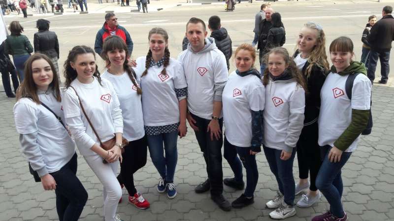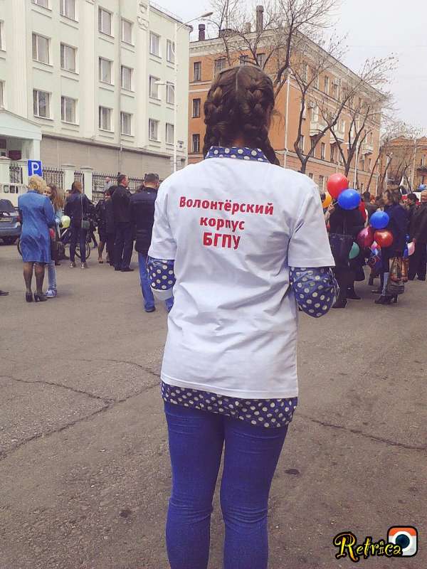 Члены Волонтерского корпуса БГПУ оказывали помощь организаторам в формировании колонн, раздавали праздничную атрибутику - воздушные шары и флажки, создавали праздничную атмосферу. Команду волонтеров университета, которые были одеты в белые футболки с символикой корпуса, возглавлял председатель Объединенного совета обучающихся Юрий Шпак.