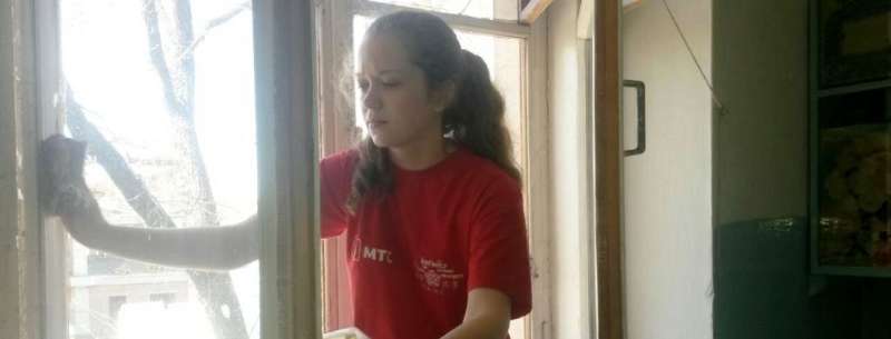 Студенты решили помимо традиционных поздравлений выразить свою признательность и благодарность реальным делом. Они помогли навести порядок в квартире, вымыть окна.