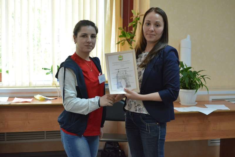 Торжественным моментом смены стала церемония награждения волонтеров за участие во всероссийских акциях, приуроченных к празднованию Великой Победы. Директор Центра «Выбор» С.В. Тюкалова вручила студентам благодарственные письма от администрации города Благовещенска.