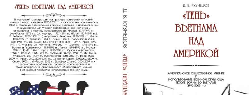В издательстве «Нестор-история» (г. Санкт-Петербург) из печати вышла монография доцента кафедры всеобщей истории, философии и культурологии БГПУ Д.В. Кузнецова «Тень» Вьетнама над Америкой. Американское общественное мнение и использование военной силы США после войны во Вьетнаме (1973- 2009 гг.) / Д.В. Кузнецов. – СПб.: Нестор-История, 2016. – 752 с.