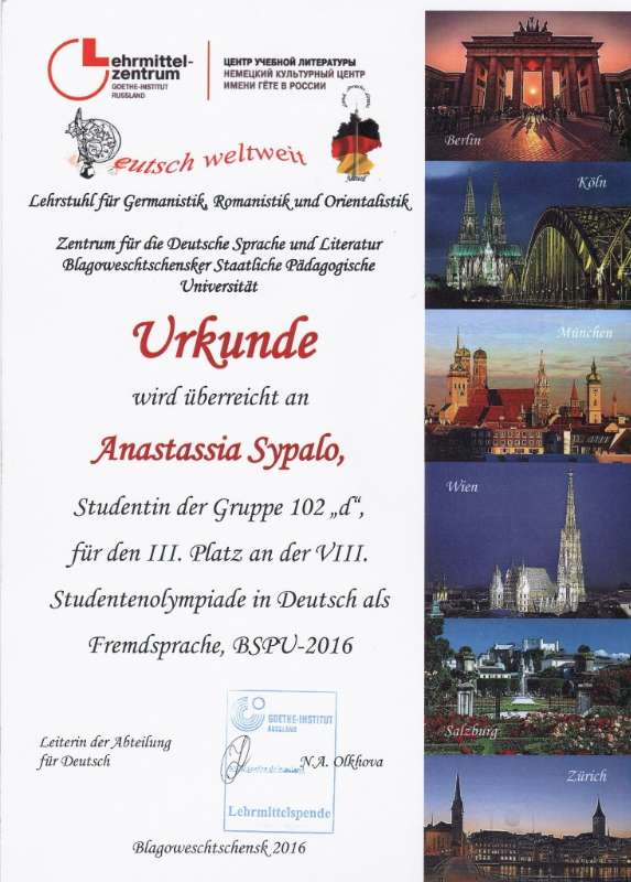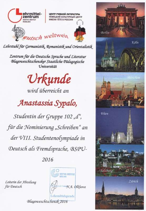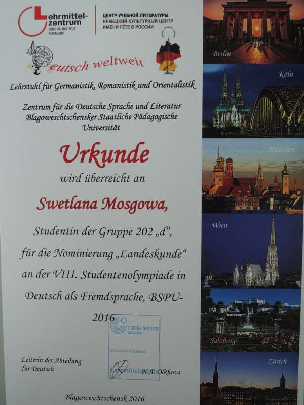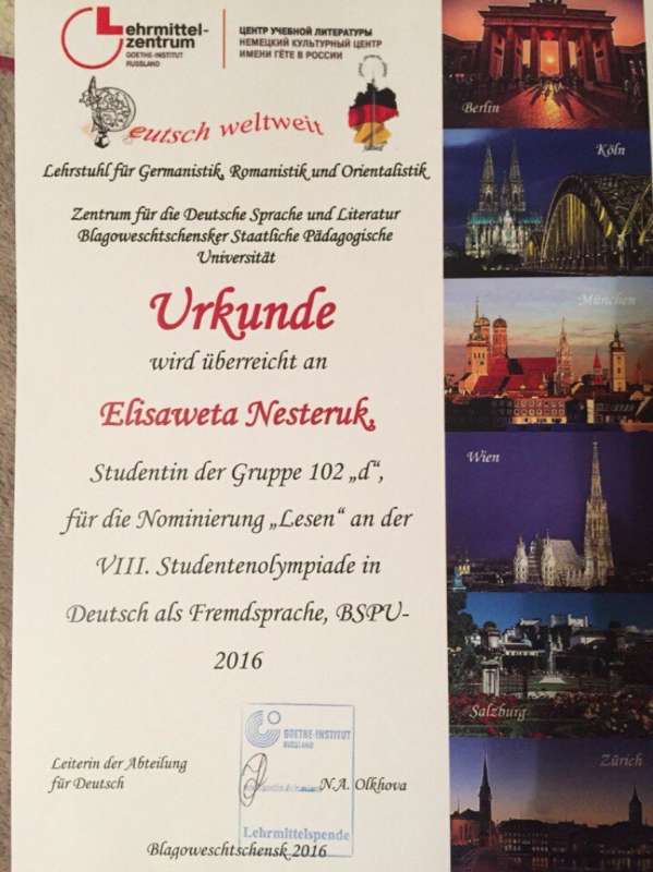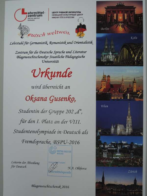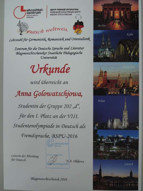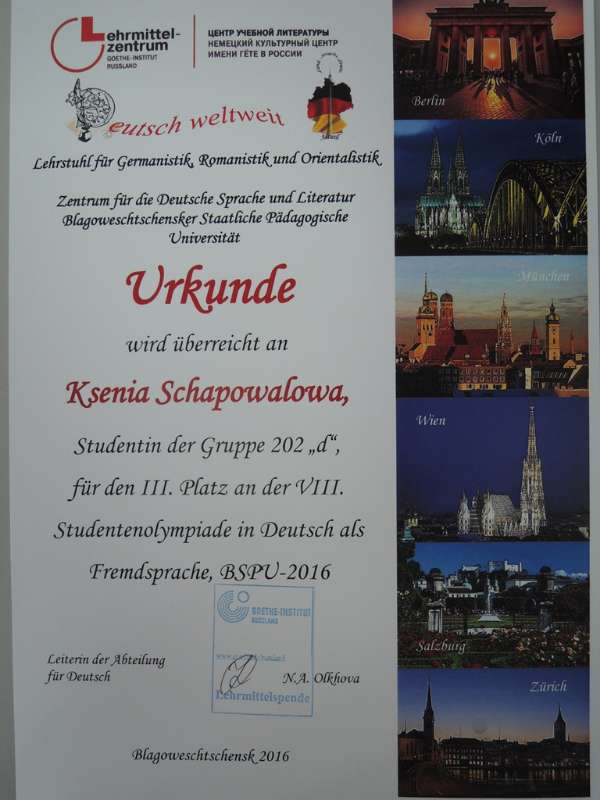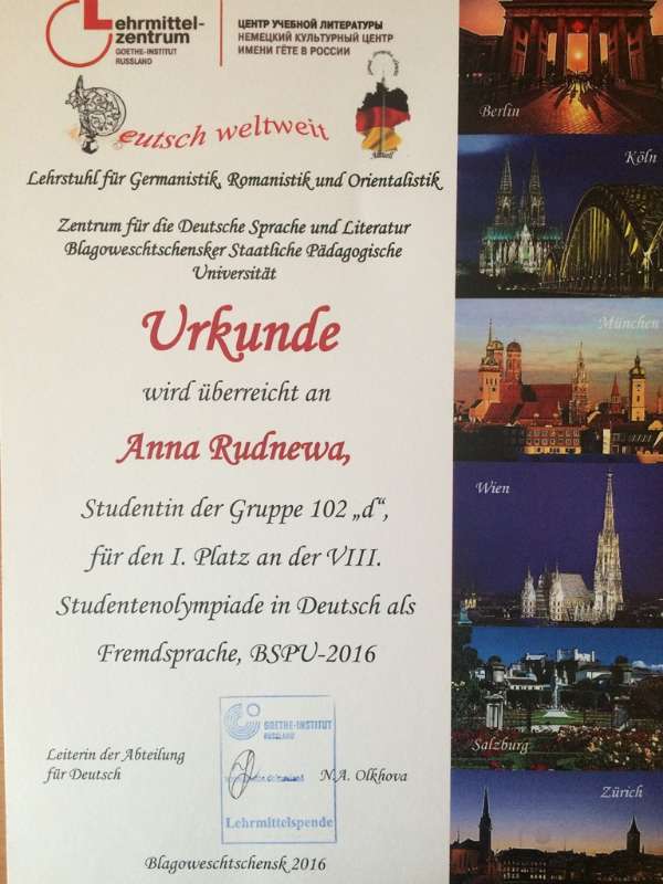 На последней учебной неделе состоялось подведение итогов VIII-ой Студенческой олимпиады по немецкому языку среди студентов 1-2 курсов. В состав жюри вошли преподаватели немецкого языка кафедры романо-германских и восточных языков.