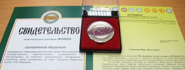 Лицей БГПУ награжден серебряной медалью международной выставки "METHODICE-2016". Высокая награда вручена за комплект методических материалов - разработку
