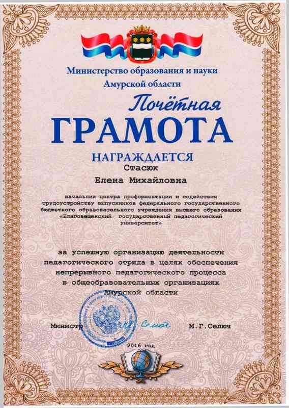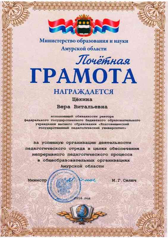 Марина Григорьевна поздравила с открытием Центра и отметила его значимость в развитии инженерно-технического творчества детей и их самореализации в области современных инженерных технологий. Министр вручила почетные грамоты ректору БГПУ В.В. Щёкиной, проректору по дополнительному профессиональному образованию О.В. Селезневой, начальнику центра профориентации и содействия трудоустройству Е.М. Стасюк за успешную организацию деятельности педагогического отряда в целях обеспечения непрерывного педагогического процесса в общеобразовательных организациях Амурской области.