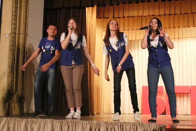 Сделать свой выбор в пользу одного из отделений первокурсники могли прямо в зале: перед сценой была оборудована информационная стойка, где лежали бланки заявлений.