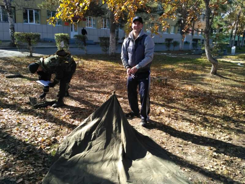 7. «Поиск в противогазе» - в ограниченном пространство (40 местная армейская палатка с мебелью) взрывают дымовую шашку.