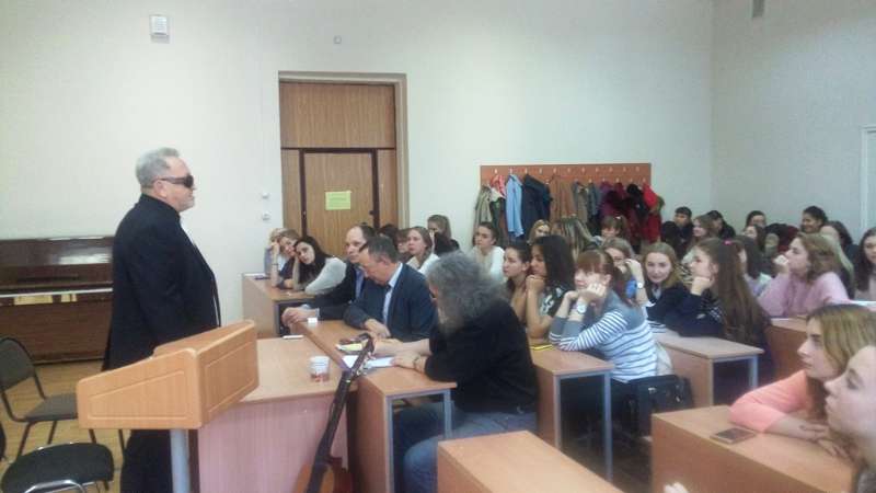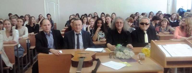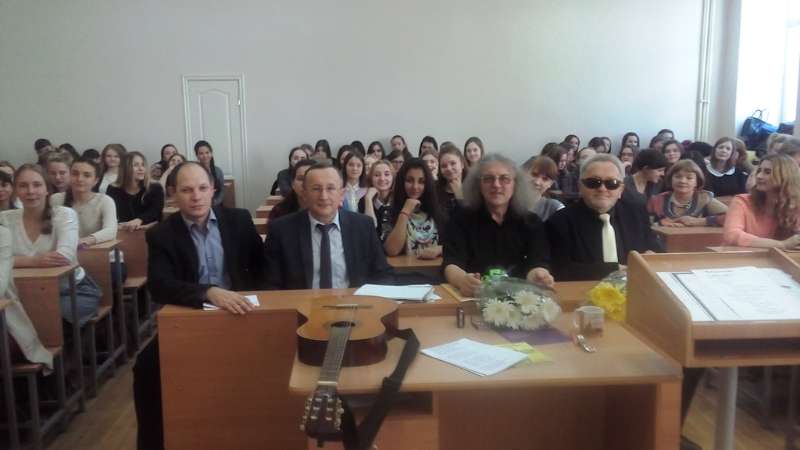 Александр Бобошко, конечно же, порадовал студентов великолепным исполнением своих песен: и проникновенных лирических, и «по-бобошкински» задорно-злободневных. Отвечая на очень разные вопросы преподавателей и студентов – весьма неожиданные («Кому на Руси жить хорошо?») и вполне традиционные (о литературных пристрастиях и творческих планах) – Александр Семёнович шутил, читал стихи, рассказывал о своей концертной деятельности.
