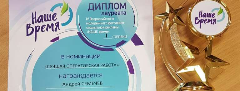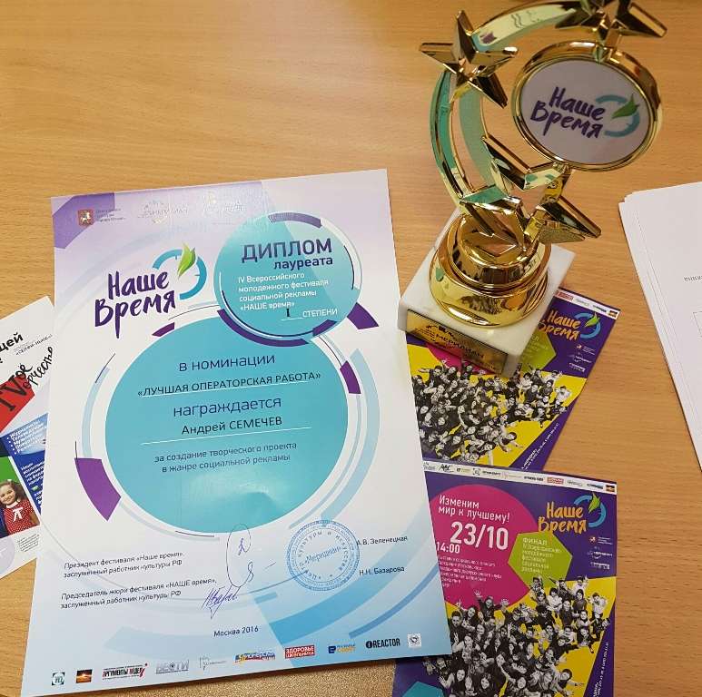 в номинации «Лучшая операторская работа» конкурса социальной рекламы IV Всероссийского молодежного фестиваля социальной