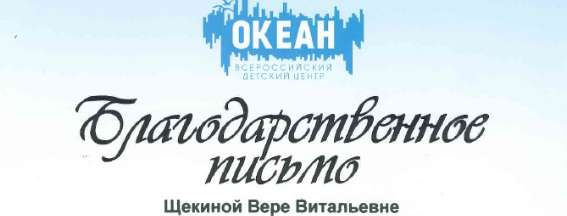 Ректор БГПУ награждена благодарственным письмом от руководства ВДЦ "Океан"