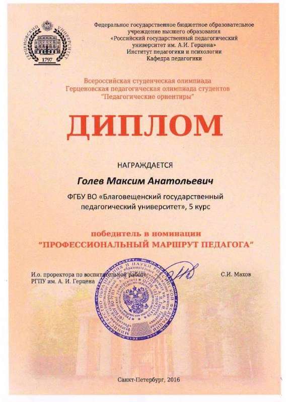 Именно под таким названием с 27 по 29 октября в РГПУ им. А.И. Герцена прошла Герценовская педагогическая олимпиада студентов «Педагогические ориентиры» (с 2015 года входит в перечень Всероссийских студенческих олимпиад, утвержденных Министерством образования и науки РФ).
