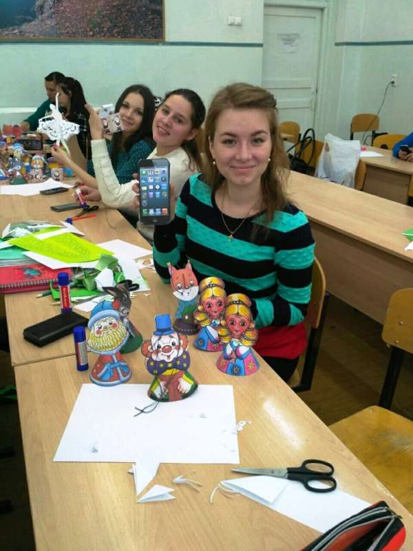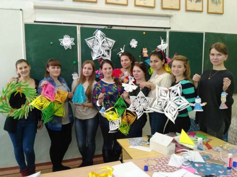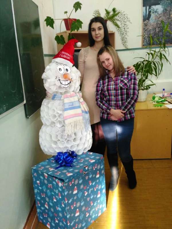 Студенты мастерят своими руками сувениры к Новому году, поделки для елок и украшения для игровых зон, актовых залов детских садов, специальных коррекционных школ, детских больниц. Первыми свои подарки уже получили дети и воспитатели ДОУ № 28. Большой Снеговик, изготовленный из обычных пластиковых стаканчиков, украсит участок детского сада, а гирлянды сделают праздничными детские группы.