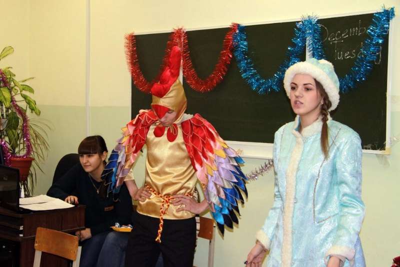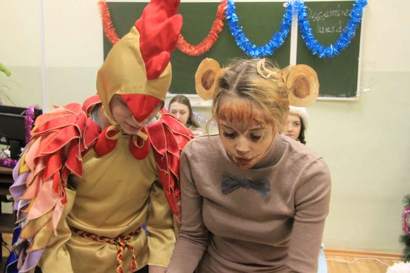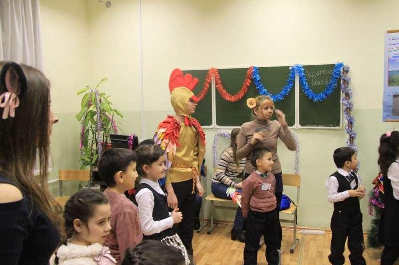 Главными героями новогоднего представления стали учащиеся Школы и студенты в роли Деда Мороза, Снегурочки, обезьянки и петушка как символов уходящего и нового 2017 года, кошечки, Бабы-Яги. Сказочные герои веселили и радовали ребят, которые пели, танцевали, играли и рассказывали стихи на русском языке у празднично украшенной ёлки. Главным подарком для маленьких учеников стала азбука-раскраска, подготовленная Павловой Л.Н., сотрудником Школы русского языка для иностранных граждан.