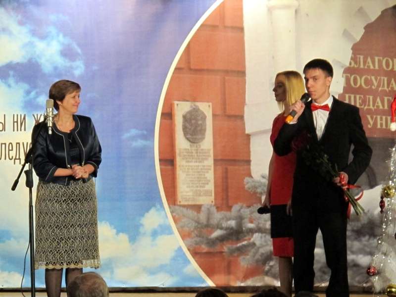 Вера Витальевна вручили специальные призы Василию Михайловичу Ступникову, в период ректорства которого БГПИ стал БГПУ, и Юрию Павловичу Сергиенко, возглавлявшему вуз 15 из 20 лет в статусе университета.