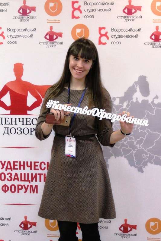 Наш вуз в этом мероприятии представляла Новикова Алина (студентка 2 курса ЕГФ, председатель студенческой комиссии по качеству образования) с проектом «Межвузовская школа по качеству образования «Большая перемена», который успешно прошел заочный этап III Национальной премии в области защиты прав обучающихся «Студенческий дозор».