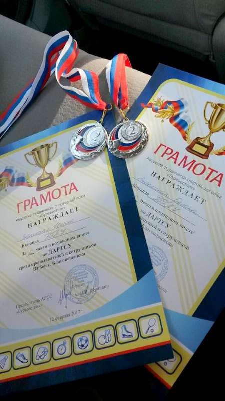 12 февраля 2017 года в спортивных комплексах ДальГАУ и АГМА состоялась спартакиада преподавателей вузов: БГПУ, ДВККУ, ДальГАУ, АмГУ, АГМА. Программа соревнований – шахматы, настольный теннис, волейбол и дартс.