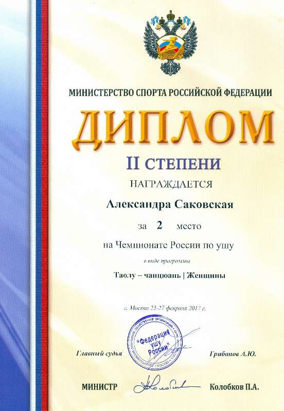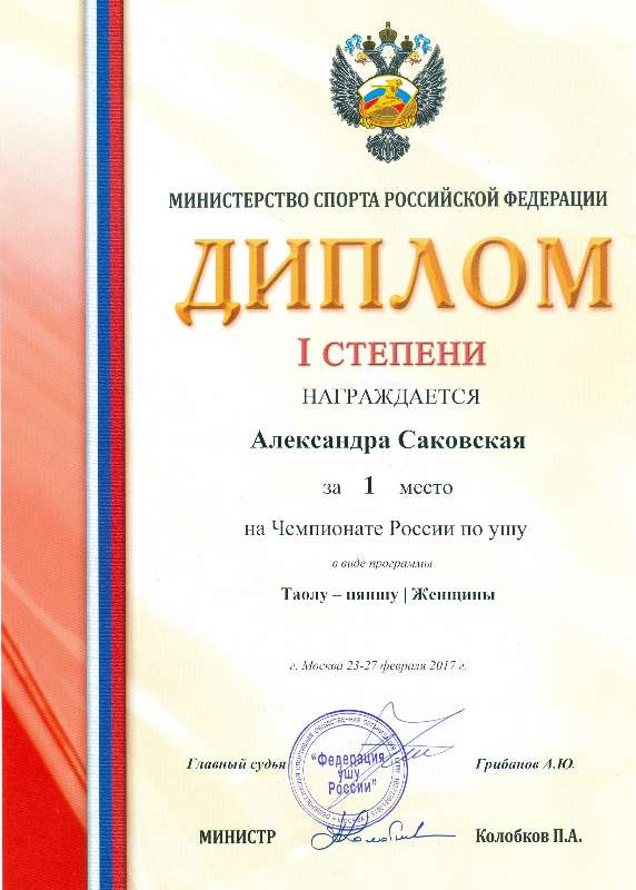 По итогам соревнований Александра завоевала золото в программе Таолу-цяншу и заняла второе место по программе Таолу-чанцюань.