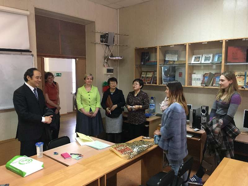 14 апреля БГПУ посетил советник-посланник, начальник отдела образования Посольства Китая в Москве Чжао Гочэн. Дипломат осмотрел Институт Конфуция, встретился с преподавателями и студентами университета. Слушатели курсов китайского языка из Ассоциации пожилых людей исполнили для почетного гостя песню на китайском языке. В ходе встречи советник-посланник рассказал о современном состоянии российско-китайских отношений в области образования, поделился воспоминаниями из студенческой жизни. Кстати, Чжао Гочэн окончил факультет русского языка и литературы пекинского университета, поэтому вся беседа проходила на русском языке.