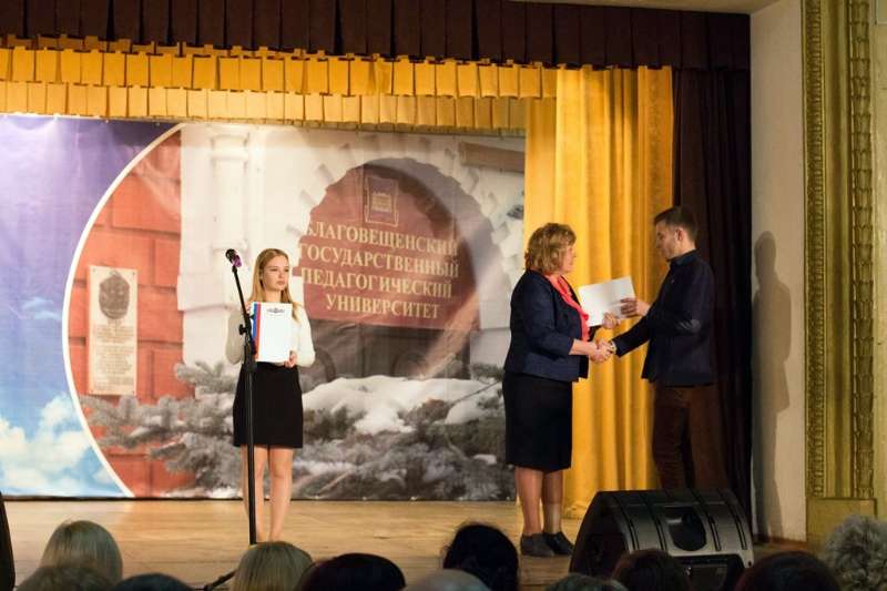 Руководитель регионального Минобрнауки вручила Благодарственные письма губернатора Амурской области Александра Козлова за вклад в обеспечение непрерывности образовательного процесса, а также активное участие в обучении и воспитании школьников студентам БГПУ, которые отработали в школах области полгода: Андрейченко Владимиру (ФФКиС), Вайцехович Жанне (ПиМНО), Вивдич Марине (ЕГФ), Губенко Надежде (ФМФ), Ермаковой Ульяне (ЕГФ), Ивашку Антону (ФФКиС), Клетченко Маргарите (ФМФ), Ключниковой Илоне (ФИЯ), Колосок Алене (ФИЯ), Костукевич Любови (ФИЯ), Матрехиной Елене (ФМФ), Мачехиной Анне (ФМФ), Петрову Александру (ФМФ), Пульковой Алине (ЕГФ), Рахуба Екатерине (ЕГФ), Слепневой Татьяне (ПиМНО), Тайдаковой Екатерине (ИФФ), Фогт Нине (ФМФ), Шараниной Анастасии (ФМФ), Щетининой Евгении (ЕГФ).