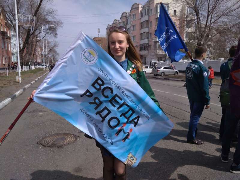 1 мая студенты и преподаватели БГПУ приняли участие в традиционном шествии трудовых коллективов в честь празднования Дня Весны и Труда.