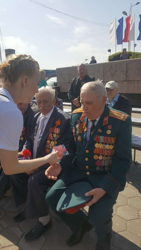 В эти дни прошли акции «Подвези ветерана», «Сувенир для ветерана», «Письмо Победы» и также концерт для ветеранов в Общественно-культурном центре, возложение цветов на Площади Победы, Парад Победы, флешмоб «Помним», «Георгиевская ленточка», в организации, которых наши волонтёры принимали самое активное участие.