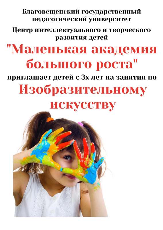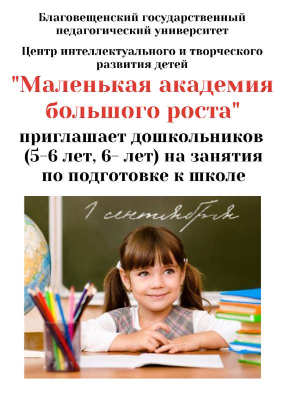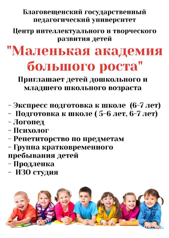 Центр интеллектуального и творческого развития БГПУ "Маленькая академия большого роста" приглашает детей дошкольного возраста и их родителей 27 мая в 10.00 на отчетное мероприятие (по адресу Трудовая, 8).