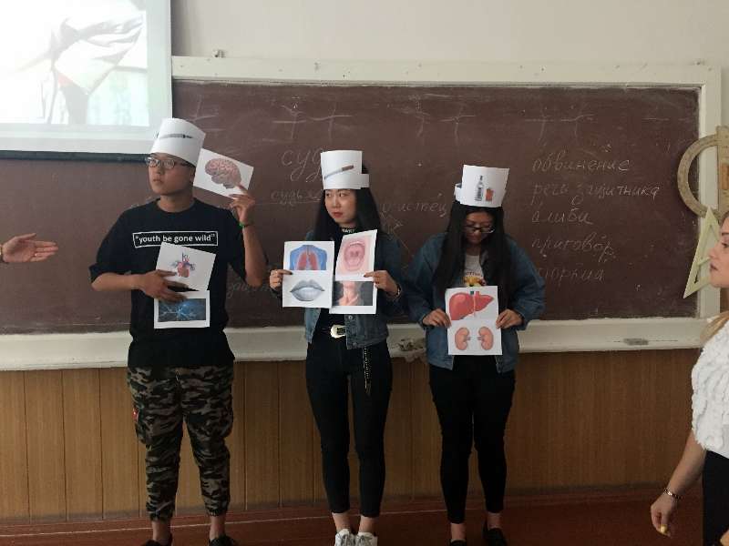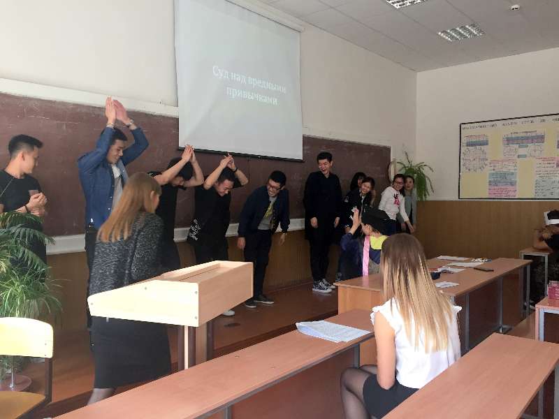 Импровизированный суд поставил перед зрителями проблему вреда курения, употребления алкоголя, наркотиков. У вредных привычек оказались как противники, так и защитники. Обе стороны приводили свои аргументы, однако суд встал на сторону обвинения и постановил изгнать вредные привычки из жизни. Серьезность обсуждаемой проблемы не помешала студентам получить новые знания в веселой игровой форме. Китайские студенты должны были: