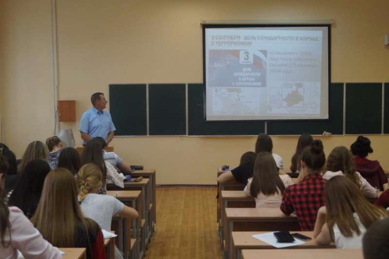 течение всего дня транслировались антитеррористические видеоролики, а с 12.30 до 13.00 студенты приняли участие в